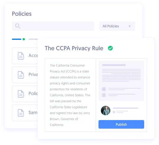 We help you maintain compliance by staying up-to-date on the latest regulations and pass on important updates to you. As new policies, procedures, or other requirements are added to CCPA, our platform will be updated quickly.