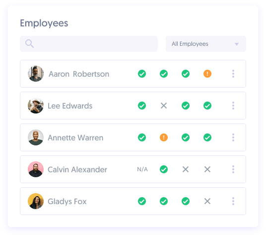 Our workflows streamline the onboarding process for your employees. Easily track that your team has completed background checks, security awareness training, and acceptance of security policies through a progress dashboard.