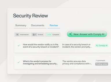 Las plataformas de automatización de cumplimiento también pueden ayudar a mejorar la colaboración interdisciplinaria para otras partes del proceso de cumplimiento, como la gestión de políticas. Por ejemplo, una plataforma de automatización de cumplimiento puede ofrecer la posibilidad de comentar una política. Esto le permite colaborar directamente en la plataforma con otros interesados internos, de modo que los comentarios y feedback sobre las políticas sean documentados y visibles.