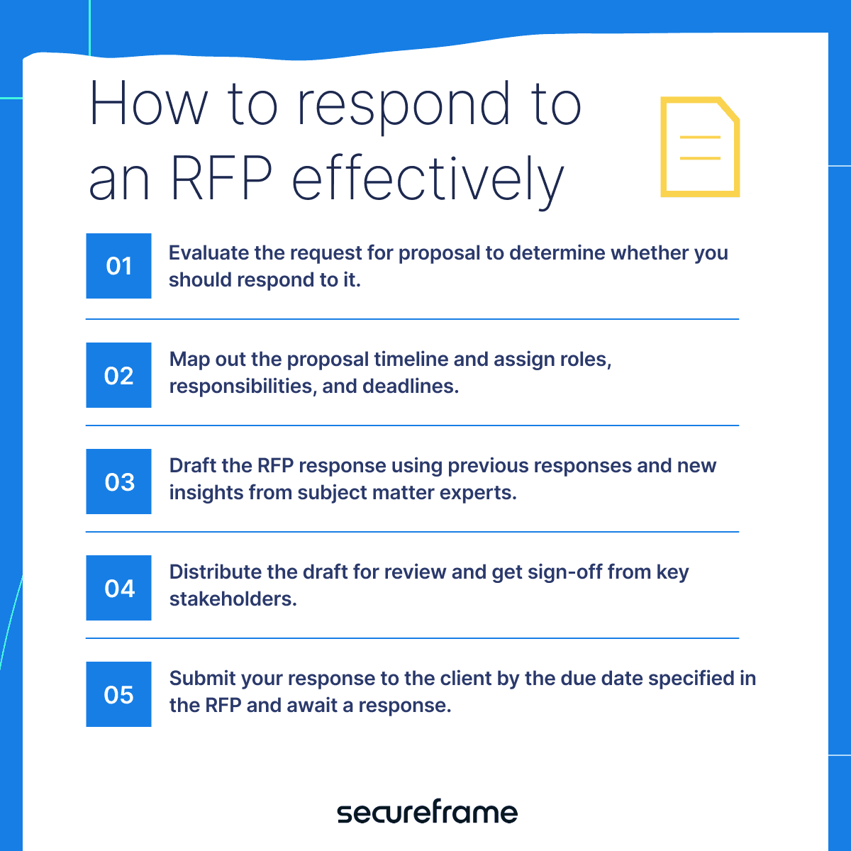 Sigue el proceso de respuesta a la RFP paso a paso a continuación para mostrar cómo tu organización puede satisfacer las necesidades del cliente.