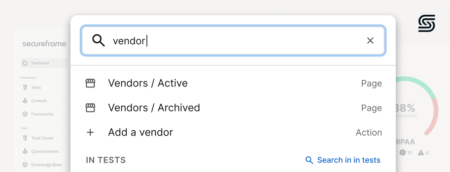 A medida que Secureframe continúa liderando la industria de automatización de cumplimiento en innovación, estamos dedicados a introducir herramientas y funciones que mejoren la experiencia del usuario, la eficiencia y la productividad. La Búsqueda Global está destinada a transformar la forma en que nuestros usuarios navegan e interactúan con Secureframe. Empoderando a los clientes con una función de búsqueda poderosa, intuitiva y completa, Secureframe está mejorando la experiencia del usuario y haciendo que la plataforma sea más fácil de navegar para los usuarios, para que tengan una visibilidad completa de su programa de seguridad.