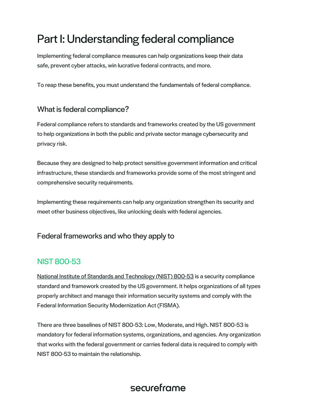 The US government has created several information security standards and frameworks for reducing risk and improving data security, including NIST 800-53, NIST 800-171, and more. While federal contractors and government agencies must comply with these standards and frameworks, any organization can benefit from implementing their requirements and best practices. Get an overview of the most common federal frameworks, who they apply to, and what their requirements are.