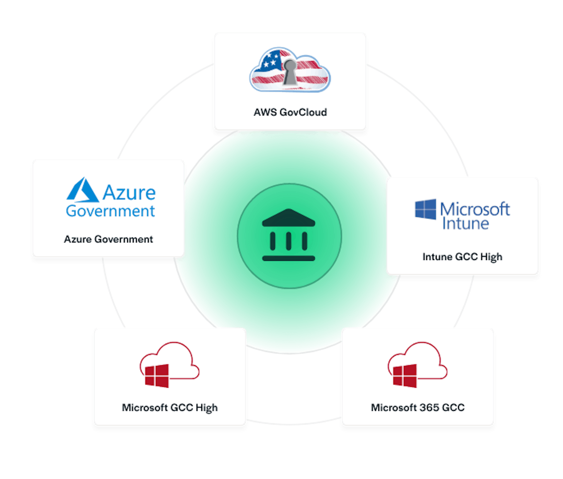 Secureframe integrates with the tools and environments federal contractors rely on, including AWS GovCloud, Azure Government, Microsoft GCC High, and Intune GCC High. Automatically collect evidence, monitor your security posture, and drive your continuous compliance strategy, without manual effort.