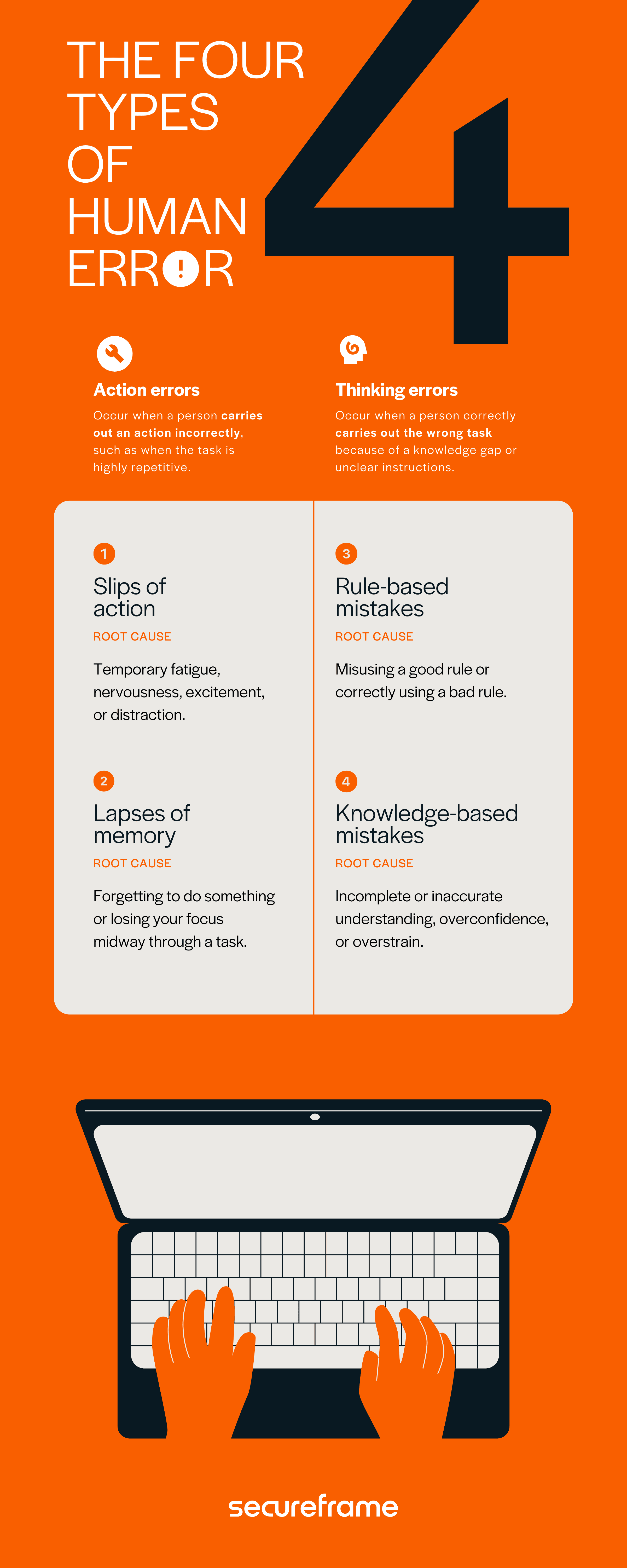 How to help: Provide cognitive aids, like checklists, automated alerts, and/or compliance readiness tools with tasks & notification features like Secureframe, to reduce employees’ reliance on memory and ensure they aren’t missing any essential tasks during planning or execution.
