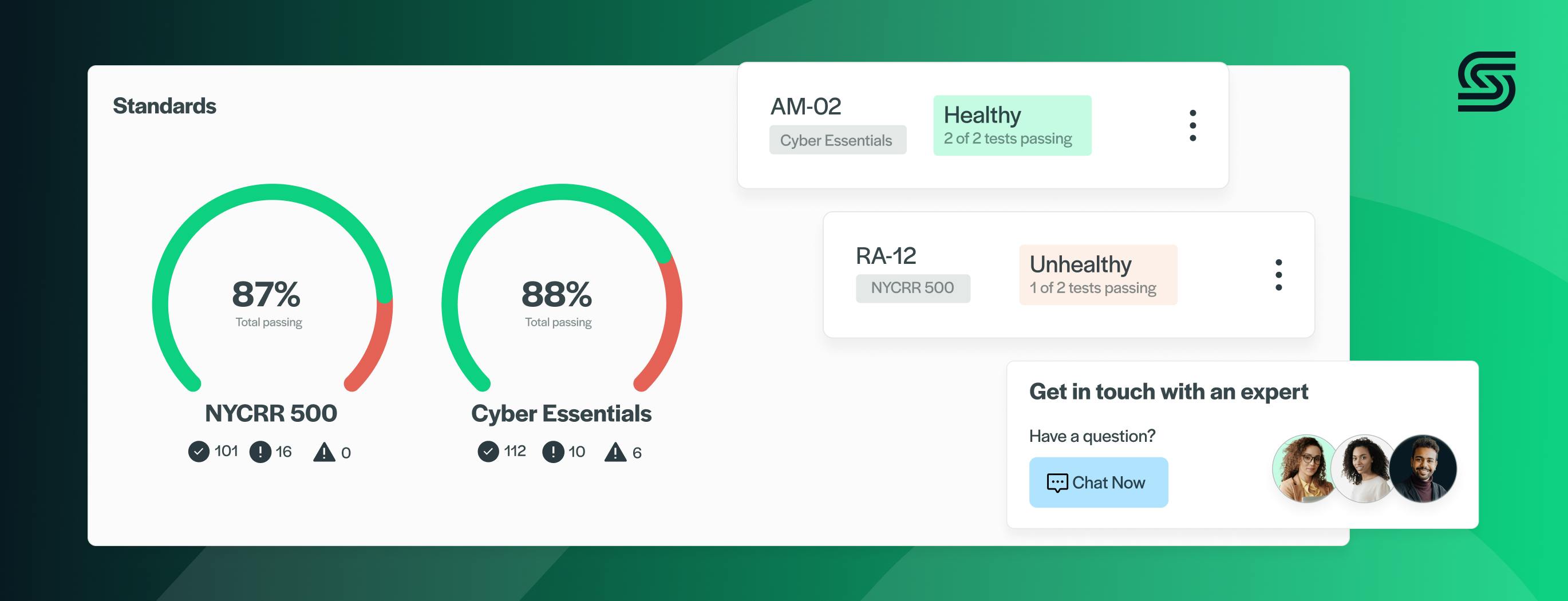 To date, we’ve helped thousands of customers spend less time on compliance by automating manual processes for popular cybersecurity and privacy frameworks including SOC 2, ISO 27001, GDPR, PCI DSS, and more. Today we are introducing support for three new frameworks on our platform: FTC Safeguards Rule, NYDFS NYCRR 500, and Cyber Essentials. Each new framework includes control mapping to framework requirements, automated tests that collect compliance evidence from integrated technologies, and built-in Secureframe tasks such as policy management as required by each framework.