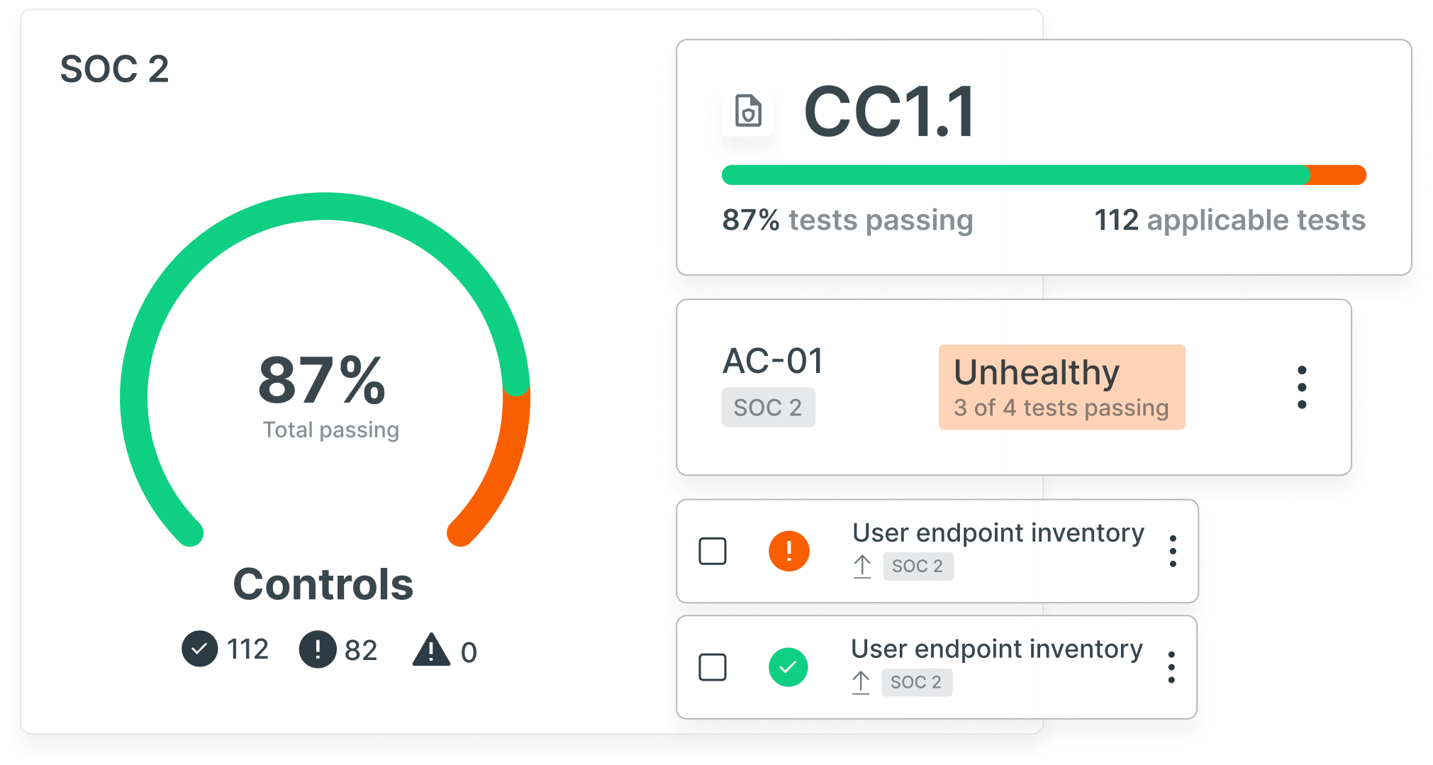 Continuously monitor and collect evidence on your administrative and technical safeguards for protecting PHI. Secureframe has over 150 integrations with the most commonly used vendors.