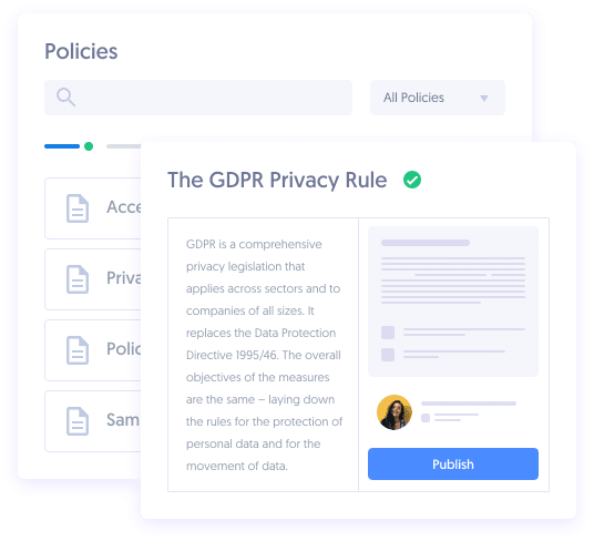 We allow you to design GDPR security policies that are right for your business. Select from our library of policies, adapt them for your organization, and publish to your personnel for review — all through our portal.